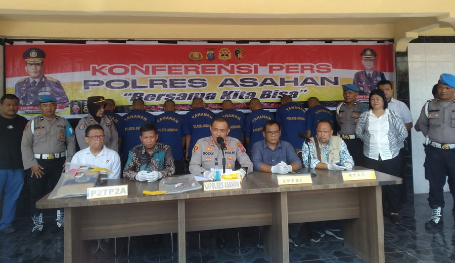 Kapolres Asahan juga mengucapkan terimakasih kepada seluruh masyarakat baik dari pihak KPAD Asahan LPPAI Asahan dan para wartawan yang telah membantu sehingga tertangkapnya ke 10 orang tersangka pelaku Persetubuhan anak di bawa umur.