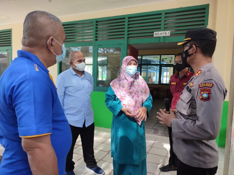 Bursakota.co.id, Natuna – Tidak ingin kecolongan dalam penerapan protokol kesehatan di satuan pendidikan Kapolres Natuna, AKBP Ike Krisnadian bersama Ketua Komisi I DPRD Natuna, Wan Arismunandar melakukan inspeksi mendadak (sidak) ke beberapa sekolah tingkat pertama di sekitar Ranai, Jumat 15 Oktober 2021.