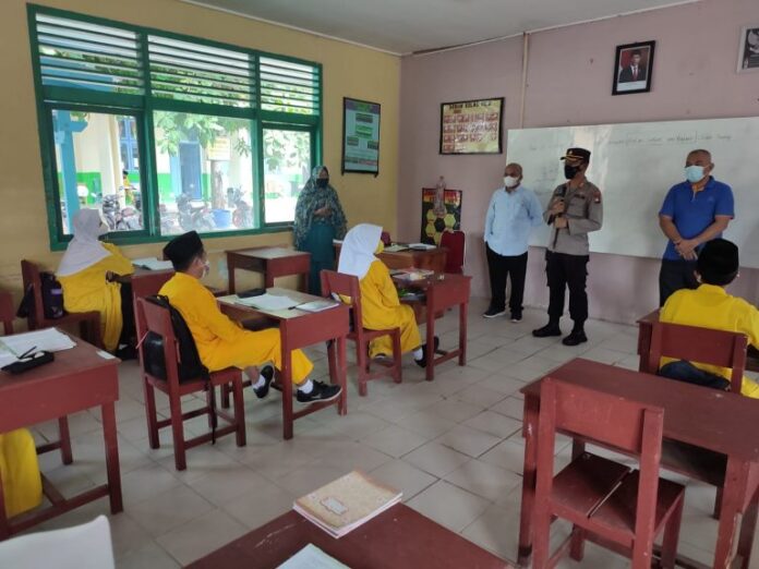 Bursakota.co.id, Natuna – Tidak ingin kecolongan dalam penerapan protokol kesehatan di satuan pendidikan Kapolres Natuna, AKBP Ike Krisnadian bersama Ketua Komisi I DPRD Natuna, Wan Arismunandar melakukan inspeksi mendadak (sidak) ke beberapa sekolah tingkat pertama di sekitar Ranai, Jumat 15 Oktober 2021.