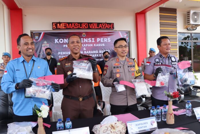 Bursakota.co.id, Bintan – Satresnarkoba Polres Bintan berhasil membekuk tiga orang laki-laki sebagai pemilik narkotika jenis sabu diwilayah Bintan, dari ketiga pelaku ditemukan barng bukti lebih dari 1 Kilo Gram.