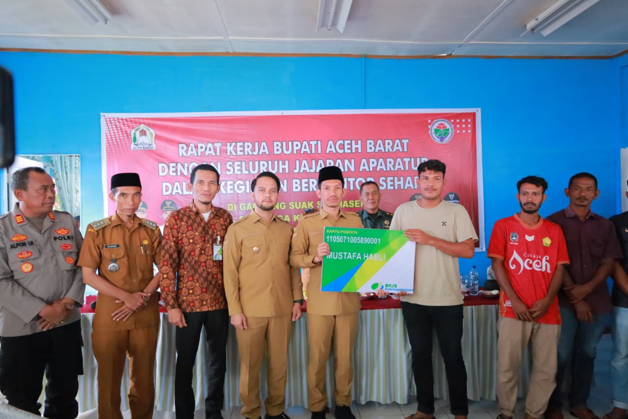 Kegiatan yang berlangsung Kamis (27/11/2025) ini turut dihadiri Bupati Aceh Barat Tarmizi SP, MM, Wakil Bupati Aceh Barat Said Fadhel, S.H, serta Kepala BPJS Ketenagakerjaan Cabang Meulaboh Fachri Idris.