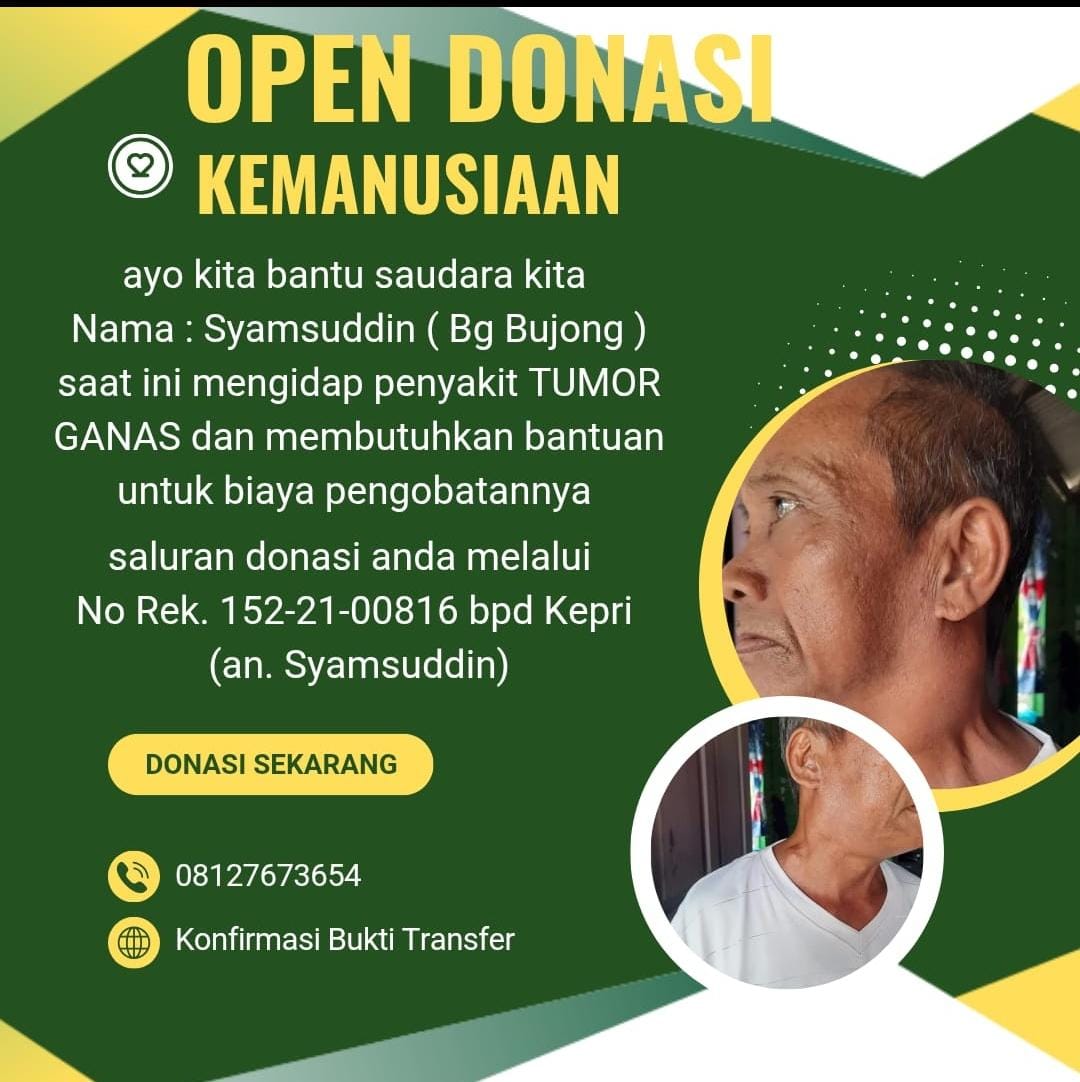 Menurut keterangan keluarga, Adi Irawan, Syamsuddin, yang akrab disapa Bg Bujong, sempat menjalani operasi pengangkatan tumor di RS Awal Bros Batam sekitar dua tahun lalu.