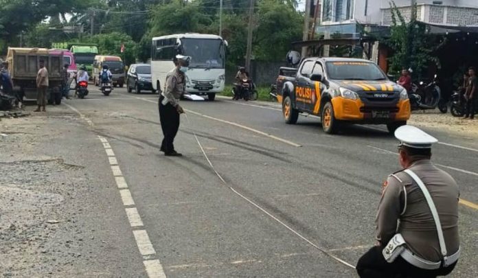 Aceh Timur – Unit Laka Lantas Satlantas Polres Aceh Timur, Polda Aceh melakukan olah Tempat Kejadian Perkara (TKP) kecelakaan lalulintas (Laka lantas) yang terjadi pada Rabu, (06/08/2025) sekira pukul 14.50 WIB, di Jalan Medan-Banda Aceh, Gampong Seunebok Barat, Kecamatan Idi Timur, Kabupaten Aceh Timur (depan Rumah Sakit dr. Zubir Mahmud).
