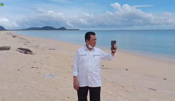 Ansar Ahmad sempat ngevlog dan menyampaikan kekagumannya terhadap keindahan Pantai Sisi yang menurutnya tidak kalah indah dengan Pantai Kuta di Bali.