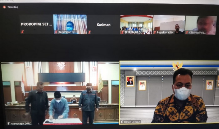 Bursakota.co.id Lingga – Pemerintah Kabupaten Lingga, menggelar rapat paripurna pengesahan Rancangan APBD Perubahan Tahun Anggaran 2021 menjadi APBD Perubahan yang berlangsung secara virtual, Kamis (30/09/2021). Adapun Paripurna yang dipimpin langsung oleh Ketua DPRD Lingga, sepakat APBD Perubahan yang disahkan sebesar Rp974 miliar lebih.