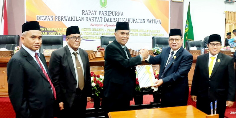 Dalam rapat paripurna tersebut seluruh Fraksi-fraksi DPRD Kabupaten Natuna menyetujui perubahan Pendapatan Daerah Kabupaten Natuna sebesar Rp.1.065.313.651.443,26 (satu triliyun enam puluh lima miliyar tiga ratus tiga belas juta empat ratus empat puluh tiga dua pulu enam sen) yang semula target pada APBD murni sebesar Rp. 1.018.702.200.000,00 (satu triliyun delapan belas miliyar tujuh ratus dua juta dua ratus ribu rupiah) bertambah sebesar Rp. 46.611.451.443,26 (empat puluh enam miliyar enam ratus sebelas juta empat ratus empat puluh tiga dua puluh enam sen).