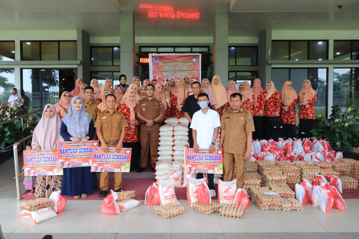 Bursakota.co.id, Payakumbuh – Penjabat (Pj) Wali Kota Payakumbuh, Rida Ananda bersama Dharma Wanita Persatuan (DWP) Kota Payakumbuh menyerahkan bantuan sembako dalam kegiatan berbagi dan peduli Aparatur Sipil Negara (ASN) Golongan I dan II, Tenaga Jasa Perorangan (TJP), dan stunting, berlangsung di kantor wali kota setempat, Selasa (18/4/2023).