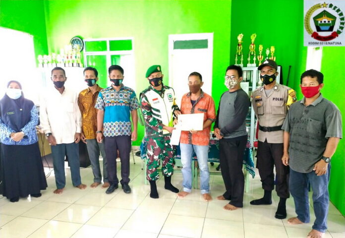 Bursakota.co.id, Anambas – Babinsa Koramil 07/Palmatak Kodim 0318/Natuna melaksanakan pendampingan penyaluran serentak Bantuan Langsung Tunai (BLT) dan Bantuan Sosial Tunai (BST) Tahun 2020 di 4 wilayah Kecamatan Palmatak, Kamis (17/12/2020).