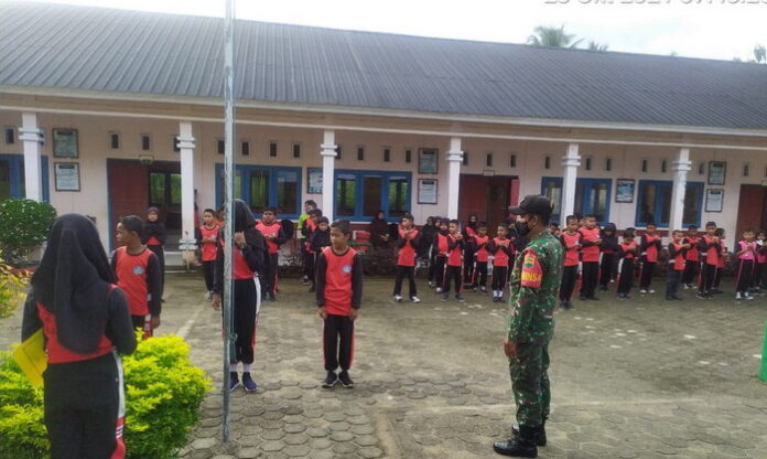 Bursakota.co.id, Anambas – Bintara Pembina Desa (Babinsa) Koramil 04/Letung Serda Sholihin dan Kopda Fian Hendratmo mengelar pelatihan Peraturan Baris Berbaris (PBB) bagi anak-anak Sekolah Dasar (SD) 012 Desa Landak kecamatan Jemaja, Kabupaten Kepulauan Anambas (KKA), Sabtu 23 Oktober 2021 dihalaman Sekolah SD 012 Desa Landak.