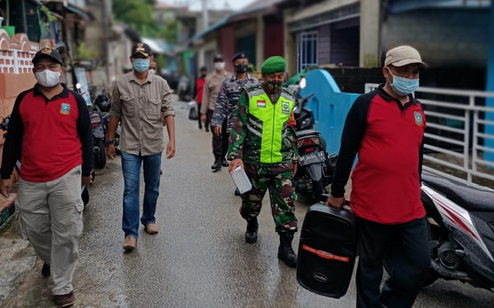 Bursakota.co.id, Anambas – Bintara Pembina Desa (Babinsa) Koramil 02/Tarempa Sertu Brandes bersama Tim Satgas Covid-19 Kelurahan Tarempa melaksanakan sosialisasi Surat Edaran (SE) Bupati KKA tentang pelaksanaan vaksinasi Covid-19 bagi penyelenggara pemerintahan, Senin (11/06/2021).