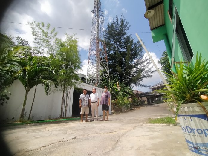 Memang, dari pantauan, tower setinggi lebih kurang 50 meter itu sangat dekat dengan rumah Bambang. Bahkan lahannya pun masuk dalam kawasan tanah miliknya.