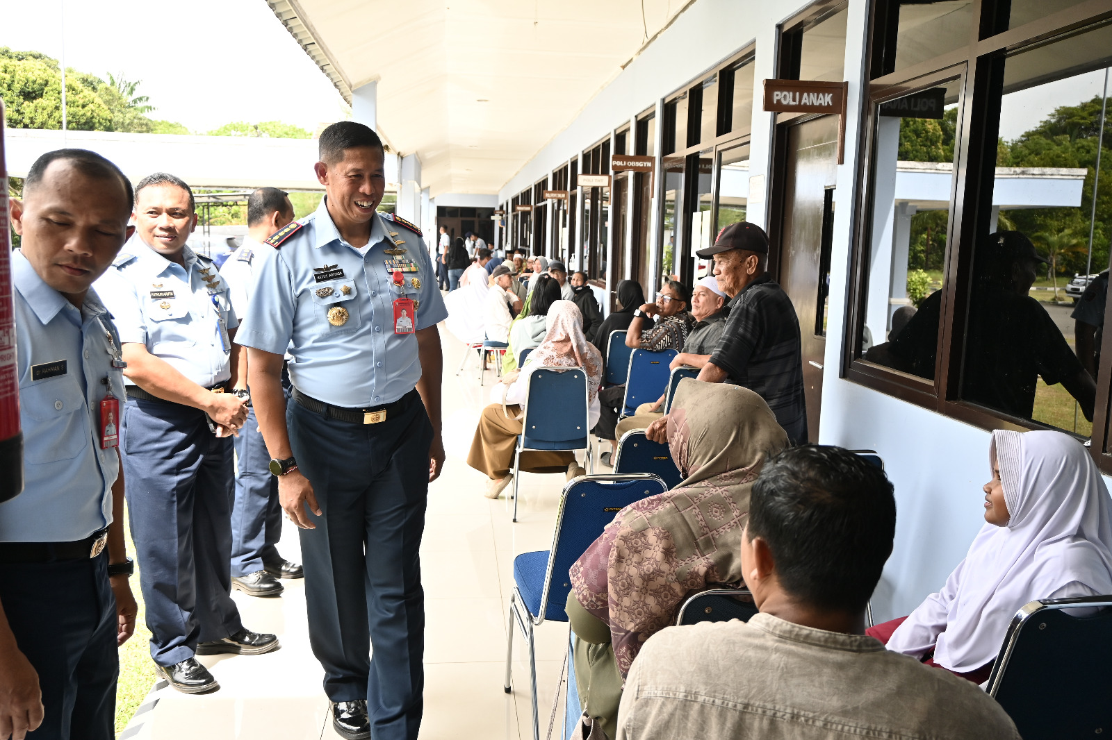 Ket Foto : Komandan Lanud RSA, Kolonel Pnb I Ketut Adiyasa Ambara, didampingi Kepala RSAU Lanud RSA, Letkol Kes Dr. Rahman Syahputra, Sp.An., bersama para Kepala Dinas (Kadis) dan Komandan Satuan (Dansat), meninjau langsung pelaksanaan kegiatan pengobatan gratis