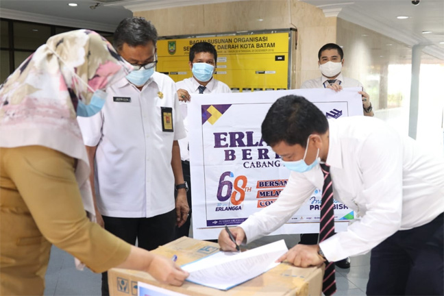 “Terima kasih, ini akan kita salurkan untuk penanganan Covid-19 di Batam,” ujarnya usai menerima bantuan secara simbolis dari Manajer Erlangga Kepri, Bontor Sunandar Manik.