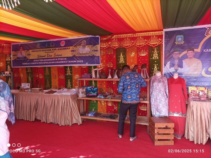 Bursakota.co.id, Anambas – Dalam rangka memeriahkan Seleksi Tilawatil Qur’an dan Hadits (STQH) ke-IX tingkat kabupaten, Pemerintah Kabupaten Kepulauan Anambas menggelar pameran stan yang menampilkan berbagai produk unggulan daerah, Senin (02/06/2025).