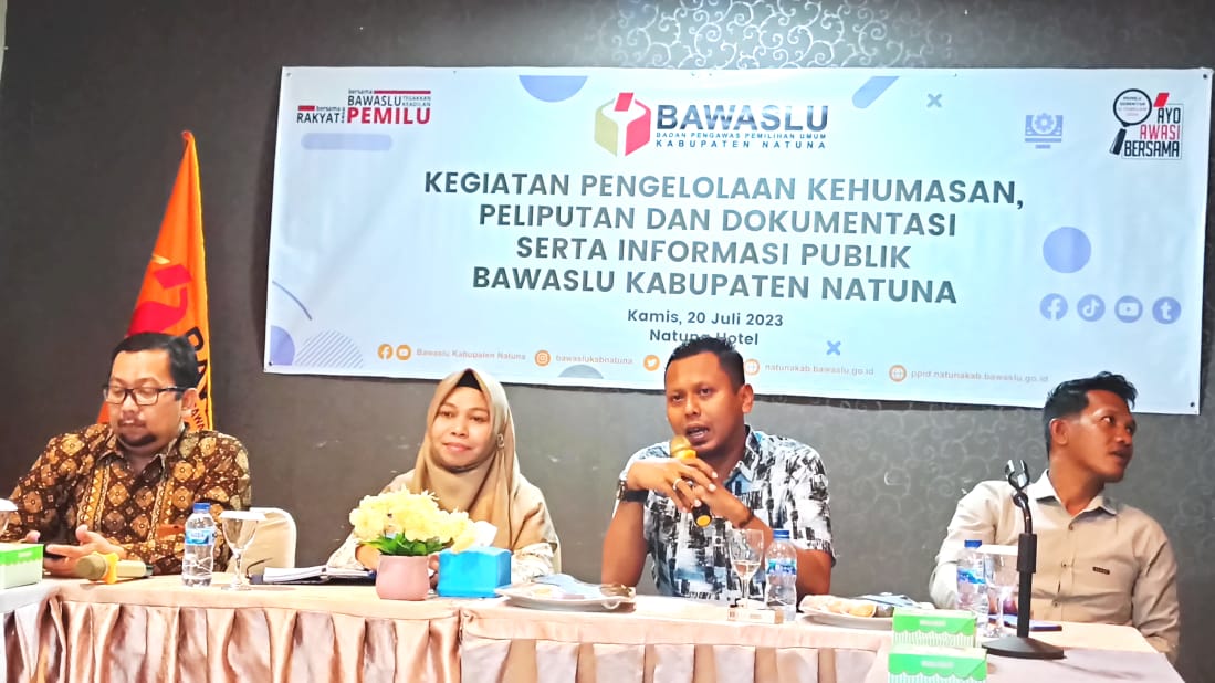 Bursakota.co.id, Natuna – Badan Pengawas Pemilihan Umum (Bawaslu) kabupaten Natuna menggelar Rapat pengelolaan kehumasan, peliputan dan dokumentasi serta informasi publik di Natuna Hotel, Jalan HR Soebrantas, Kelurahan Ranai Darat pada Kamis malam (20/07/2023).