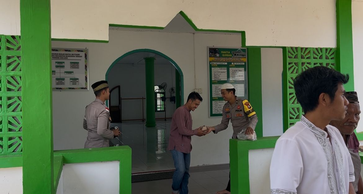 Selain berbagi makanan, kegiatan ini menjadi sarana mempererat silaturahmi antara Polri dan masyarakat, sekaligus menunjukkan kepedulian Bhabinkamtibmas terhadap jamaah dan warga sekitar.