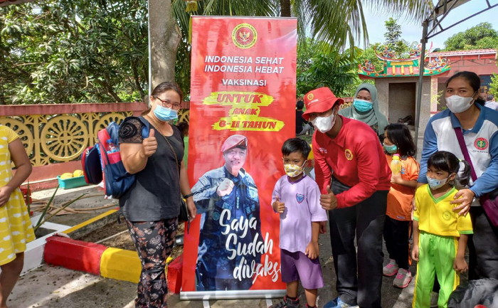 Bursakota.co.id, Batam – Kegiatan vaksinasi Covid-19 untuk anak usia 6-11 tahun masih terus dilanjutkan Binda Kepri bekerjasama dengan Dinas Kesehatan Batam, pada Rabu (12/01/22).