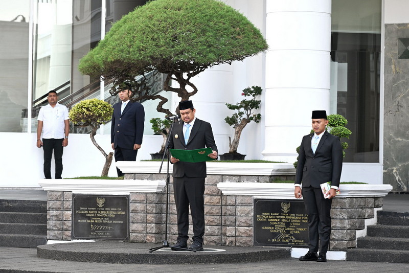 Upacara bendera Harla Pancasila yang diikuti para pimpinan Organisasi Perangkat Daerah (OPD) dan jajaran Aparatur Sipil Negara (ASN) di lingkungan Pemerintah Provinsi (Pempov) Sumut, berlangsung khidmat.