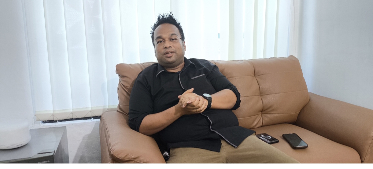 Kepala BPJS Ketenagakerjaan Natuna, Hendra Harry Jonna saat memberikan keterangan kepada awak media di Ruang Kerjanya pada Jumat (21/11/2025) pagi