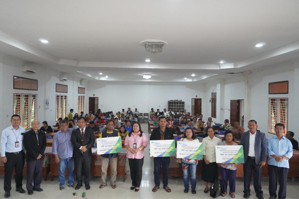 Bursakota.co.id, Pematangsiantar – Badan Penyelenggara Jaminan Sosial (BPJS) Ketenagakerjaan Cabang Pematangsiantar menyerahkan santunan kematian dengan total sebesar Rp168 juta kepada masing-masing ahli waris atas nama Mardohar Matondang dari HKBP Ressort Pardamean, Demson Silitonga dari HKBP Ressort Saribu Jawa, Kesman Napitu dari HKBP Ressort Tigaras dan Nurmalina Sipayung dari HKBP Ressort Pematangsiantar bertempat di Kantor Kantor HKBP Distrik V Sumatera Timur Kota Pematangsiantar.