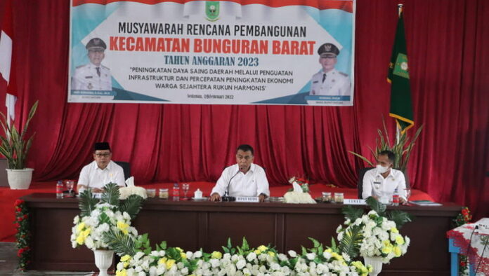 Natuna – Bupati Natuna, Wan Siswandi melanjutkan rangkaian kegiatan di kecamatan Bunguran Barat, dengan membuka Musrenbang Kecamatan tahun 2022 di Gedung Serba Guna Kantor Camat setempat, Rabu (09/02).