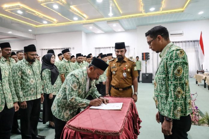 Aceh Timur — Bupati Aceh Timur, Iskandar Usman Al-Farlaky, melantik Pengurus Dewan Pimpinan Cabang Asosiasi Pemerintahan Desa Seluruh Indonesia (DPC APDESI) Kabupaten Aceh Timur masa bakti 2026–2031. Prosesi pelantikan berlangsung di Aula Serbaguna Pendopo Bupati Aceh Timur, Senin (20/4/2026).