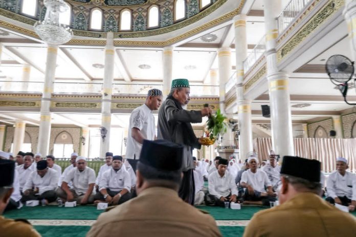 Aceh Timur – Bupati Aceh Timur, Iskandar Usman Al-Farlaky, S.H.I, M.Si melakukan Peusijuek calon jamaah haji asal daerah tersebut untuk musim haji tahun 2026. Prosesi Peusijuk berlangsung di Mesjid, Agung Darussalihin Idi, Selasa 28 April 2026.