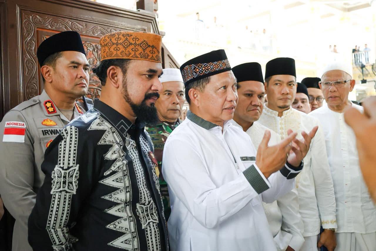 Sebelum agenda peninjauan, rombongan Mendagri melaksanakan salat Subuh berjamaah di Masjid Agung Darussalihin. Dalam rangkaian kunjungan tersebut, Mendagri juga melaksanakan salat Jumat berjamaah.