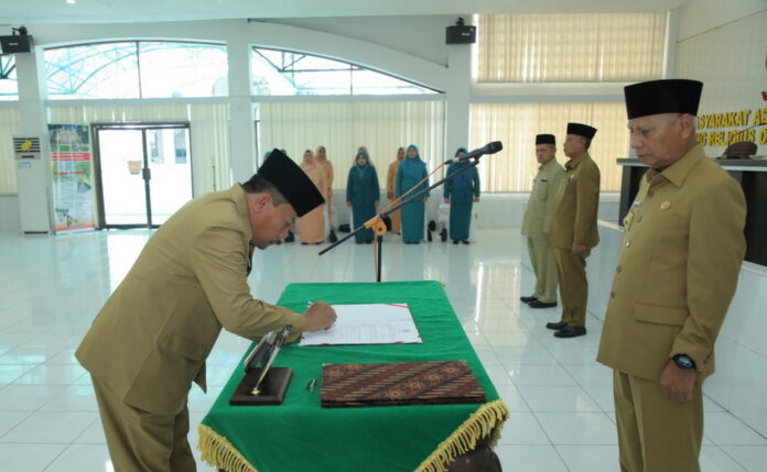 Bursakota.co.id, Asahan – Bertemapta di Aula Melati Kantor Bupati Asahan, Bupati Asahan H. Surya, BSc mengambil sumpah/janji dan melantik 3 orang Pejabat Pimpinan Tinggi Pratama dan 20 orang Pejabat Administrator dan Pengawas di Lingkungan Pemerintah Kabupaten Asahan, Jum’at (31/03/2023).