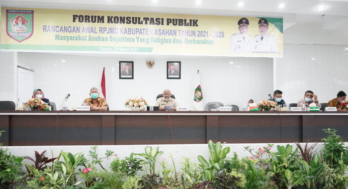 Bursakota.co.id, Asahan – Bupati Asahan, H. Surya, B.Sc membuka Forum Konsultasi Publik Rancangan Awal Rencana Pembangunan Jangka Menengah Daerah(RPJMD) Kabupaten Asahan tahun 2021-2026 di Aula Melati Kantor Bupati Asahan, Kamis (25/03/2021).