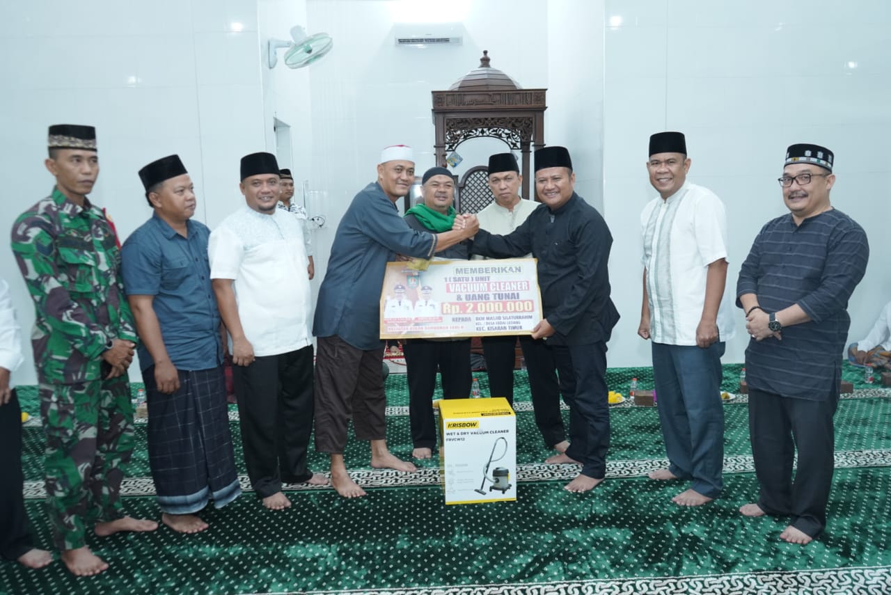 Kegiatan ini dirangkai juga dengan penyerahan bantuan kepada BKM berupa uang tunai Rp. 2.000.000 beserta vacuum cleaner sekaligus penyantunan kepada anak yatim dan kaum dhuafa oleh Bupati Asahan.(Rik)