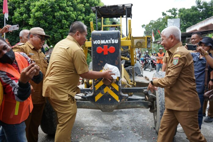 Bursakota.co.id, Asahan – Jalan penghubung Desa Bandar Pulau Pekan menuju Desa Gonting Malaha Kecamatan Bandar Pulau dimulai pengerjaan hotmix nya. Bupati Asahan H. Surya, BSc dan Wakil Bupati Asahan Taufik Zainal Abidin Siregar, S. Sos, M. Si berkesempatan meletakkan langsung batu pertama pembangunan jalan tersebut, Selasa (01/08/2023).
