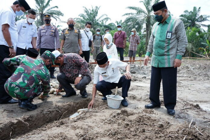 Bursakota.co.id, Asahan – Bupati Asahan H. Surya, BSc, didampingi Ketua Yayasan Nurul Ikhwan H. Ihwan Bangun Rambe, Lc, MA, Ketua Imtaq Kab Asahan H. Ahmad Qosim Marpaung, Asisten Administrasi Umum Khaidir Afrin, SE, Kakan Kemenag, Camat Air Joman dan Unsur Forkopimcam melakukan Peletakan Batu Pertama Pembangunan Pondik Pesantren Nurul Ikhwan yang berlokasi di Jalan Dahlia, Dusun III Desa Subur Kecamatan Air Joman, Rabu (28/07/2021).