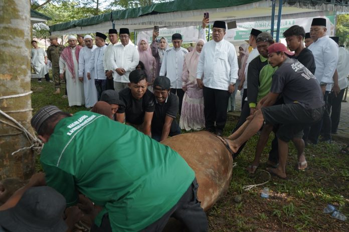 Bursakota.co id, Asahan – Pemerintah Kabupaten Asahan melaksanakan kegiatan penyembelihan hewan kurban dalam rangka memperingati Hari Raya Idul Adha 1446 H/2025 M yang dipusatkan di Alun-Alun Rambate Rata Raya Kisaran, Jumat pagi (06/06/2025).