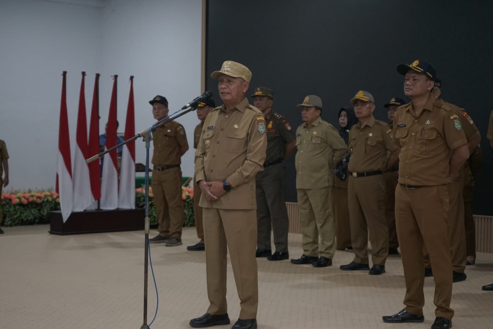 Terlihat Para Asisten, Staf Ahli Bupati Asahan, OPD, Camat, Kepala Desa dan ASN di Lingkungan Pemerintah Kabupaten Asahan mengikuti apel tersebut.