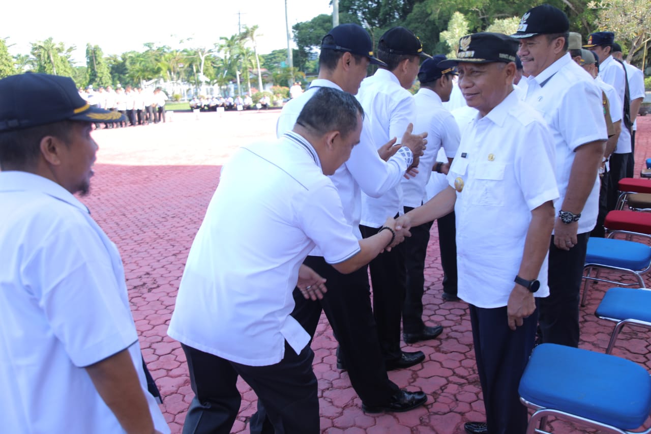 Diakhir apel seluruh ASN di Lingkungan Pemerintah Kabupaten Asahan yang mengikuti apel saling salam bersalaman dengan Bupati Asahan, Wakil Bupati Asahan dan Sekretaris Daerah Kabupaten Asahan.(Rik)