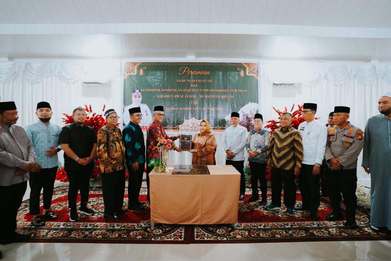 Bengkalis – Bupati Bengkalis, Kasmarni, meresmikan Gedung Nur Iman dan Kelompok Bimbingan Ibadah Haji dan Umrah (KBIHU) Nur Iman yang berlokasi di Masjid Nur Iman, Kelurahan Balik Alam, Kecamatan Mandau, Sabtu (30/8/2025). Peresmian ini menjadi langkah penting dalam meningkatkan kualitas pelayanan ibadah umat Islam, khususnya bagi jamaah calon haji dan umrah di Kecamatan Mandau.