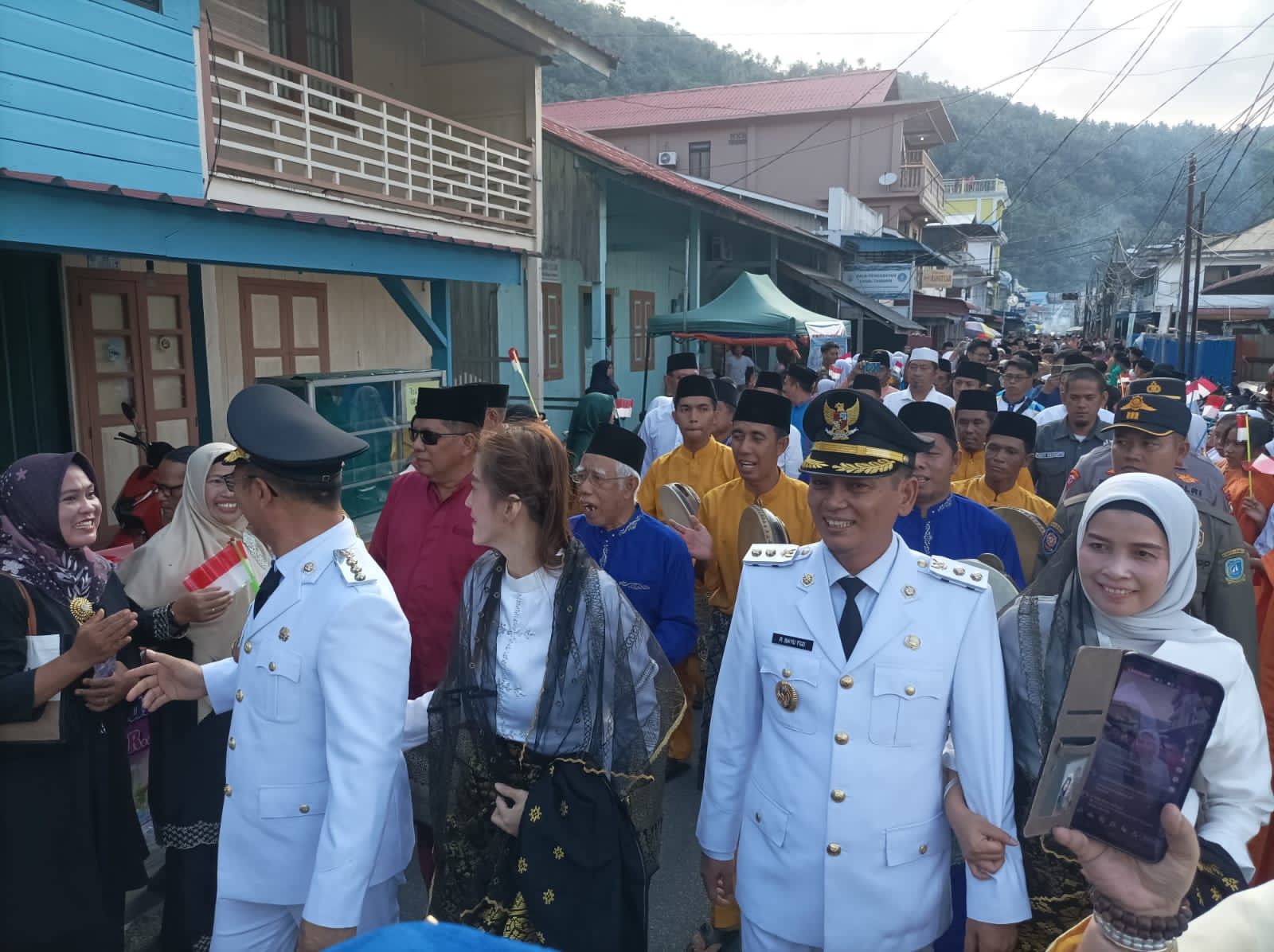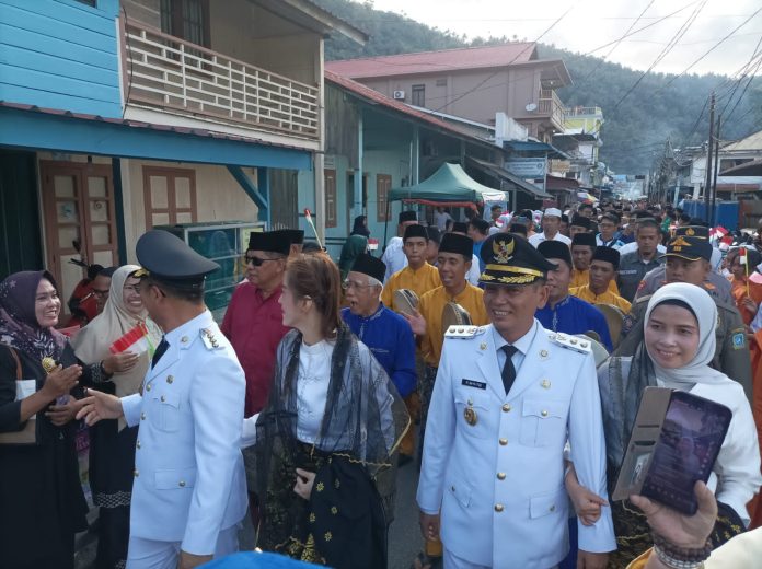 Bupati dan wakil bupati Kepulauan Anambas dengan selogan Energi Baru Anambas Baju, itu langsung diarak-arakan menuju ke gedung Balai Pertemuan Masyarakat Siantan (BPMS) Tarempa.