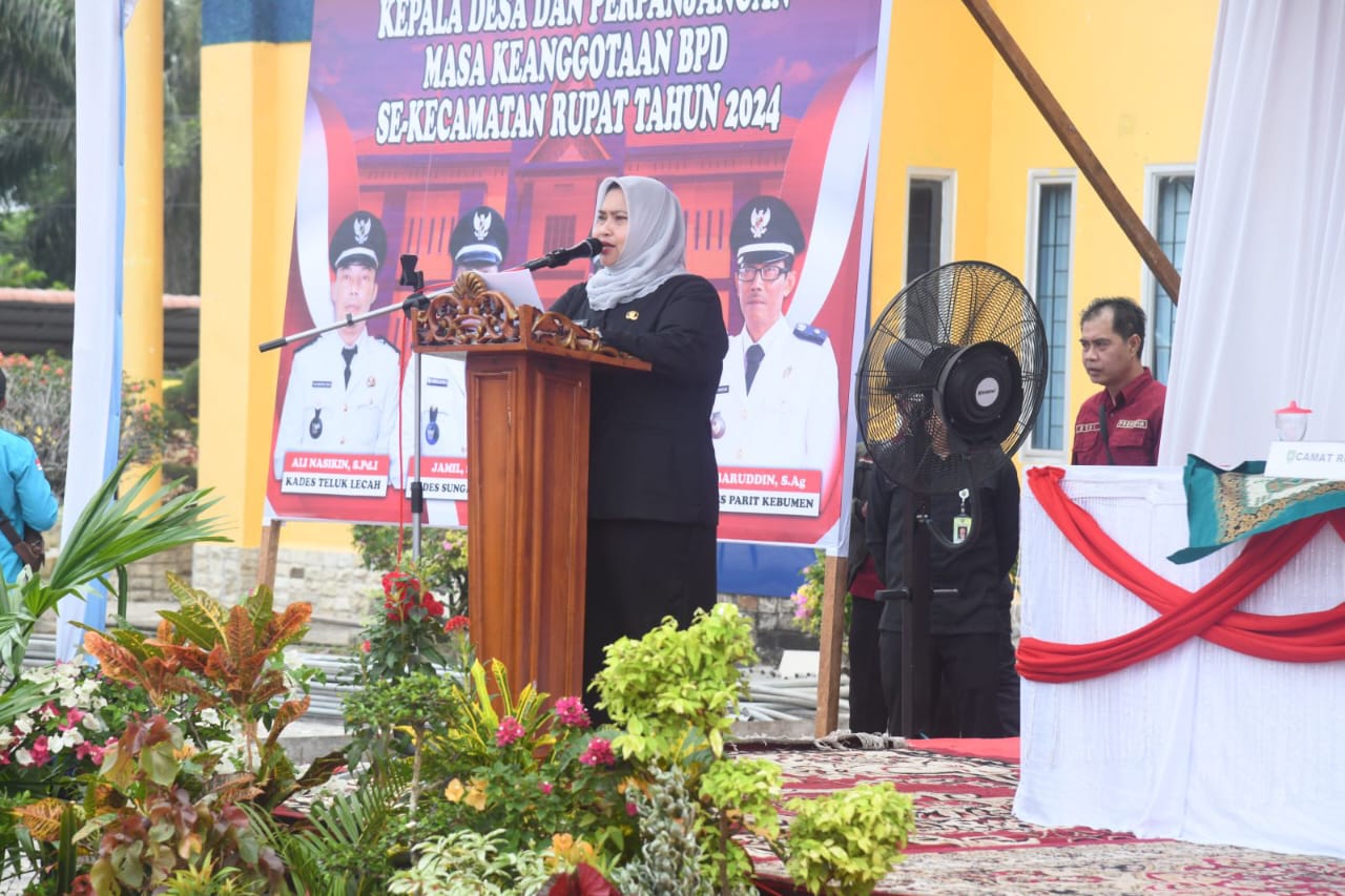 “Selamat dan tahniah kami berikan kepada Kepala Desa dan seluruh Anggota BPD serta Satlinmas se-Kecamatan Rupat dan Rupat Utara,” ucap Kasmarni.