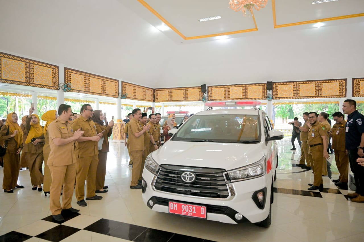 Mobil ambulance yang diserahkan Bupati Kasmarni secara simbolis ini berupa 3 unit yang diperuntukkan Puskesmas Tenggayun, Meskom, Pambang dan 4 unit mobil Ambulance Pusling yang diperuntukkan terhadap Puskesmas Duri Kota, Balai Makam, Tenggayun serta Pambang.