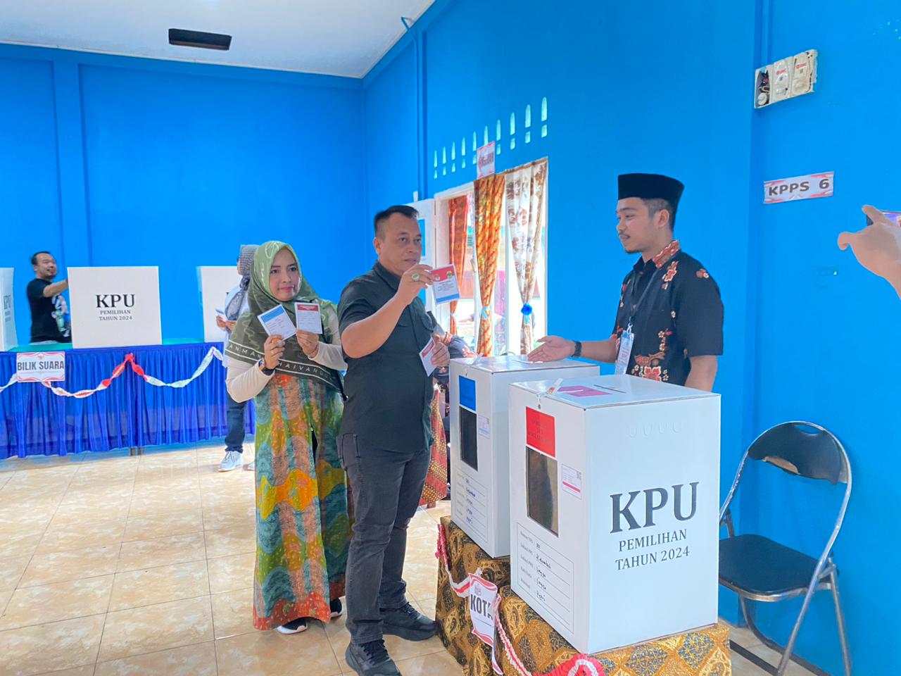 Bupati Nizar tampak hadir bersama istrinya menunjukkan kekompakan dalam menyukseskan pesta demokrasi di Kabupaten Lingga. Proses pemungutan suara berjalan lancar, dengan antusiasme masyarakat yang tinggi untuk menentukan pemimpin daerah di masa depan.