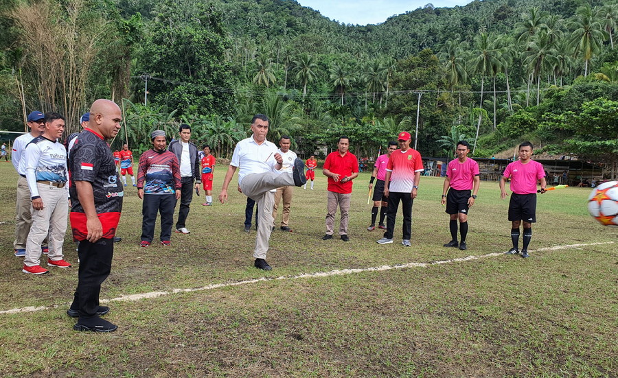 Bursakota.co.id, Natuna – Bupati Natuna Wan Siswandi didampingi Wakil Bupati Rodhial Huda membuka secara langsung open turnament Desa Tanjung Batang yang digelar di lapangan bola Tanjung Batang Kecamatan Pulau Tiga, Minggu (23/10).