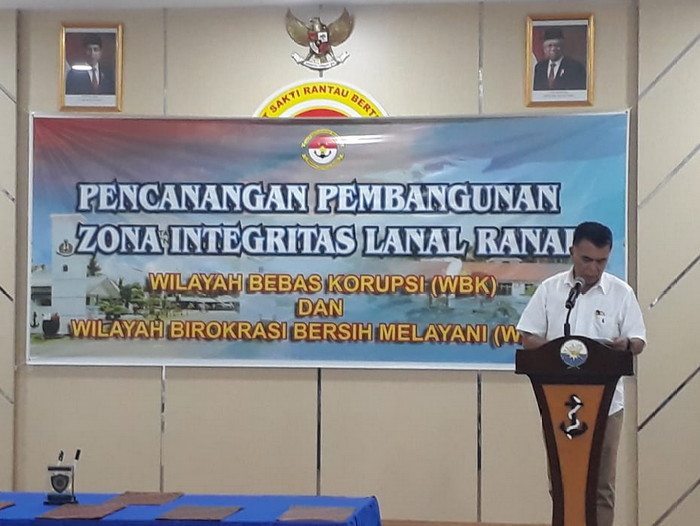 Siswandi, menyampaikan, bahwa pencanangan pembangunan zona integritas perlu diwujudkan agar Lanal Ranai menjadi lembaga pemerintah berpredikat Wilayah Bebas Korupsi (WBK) dan Wilayah Birokrasi Bersih Melayani (WBBM).