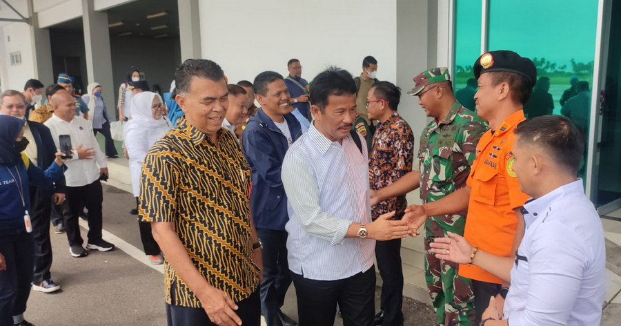 Kedua pejabat tersebut tiba di Bandara Raden Sadjad (RSA), dengan menggunakan pesawat Wings Air dengan disambut langsung oleh Bupati Natuna, Ketua DPRD, sejumlah anggota DPRD, dan para Forkopimda.