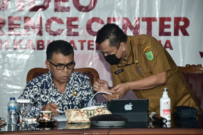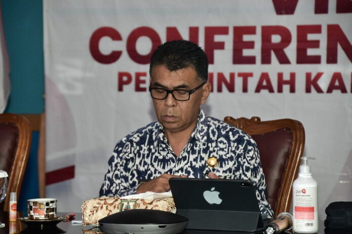 Natuna – Bupati Natuna Wan Siswandi,S.sos,.M.Si yang didampingi beberapa Organisasi Perangkat Daerah (OPD) mengikuti Video Conference (Vidcon) bersama Kedutan Besar Republik Indonesia (Ri) Jepang terkait rencana pembangunan Pelabuhan Samudra yang berlokasi di Desa Teluk Buton, Kecamatan Bunguran Utara.