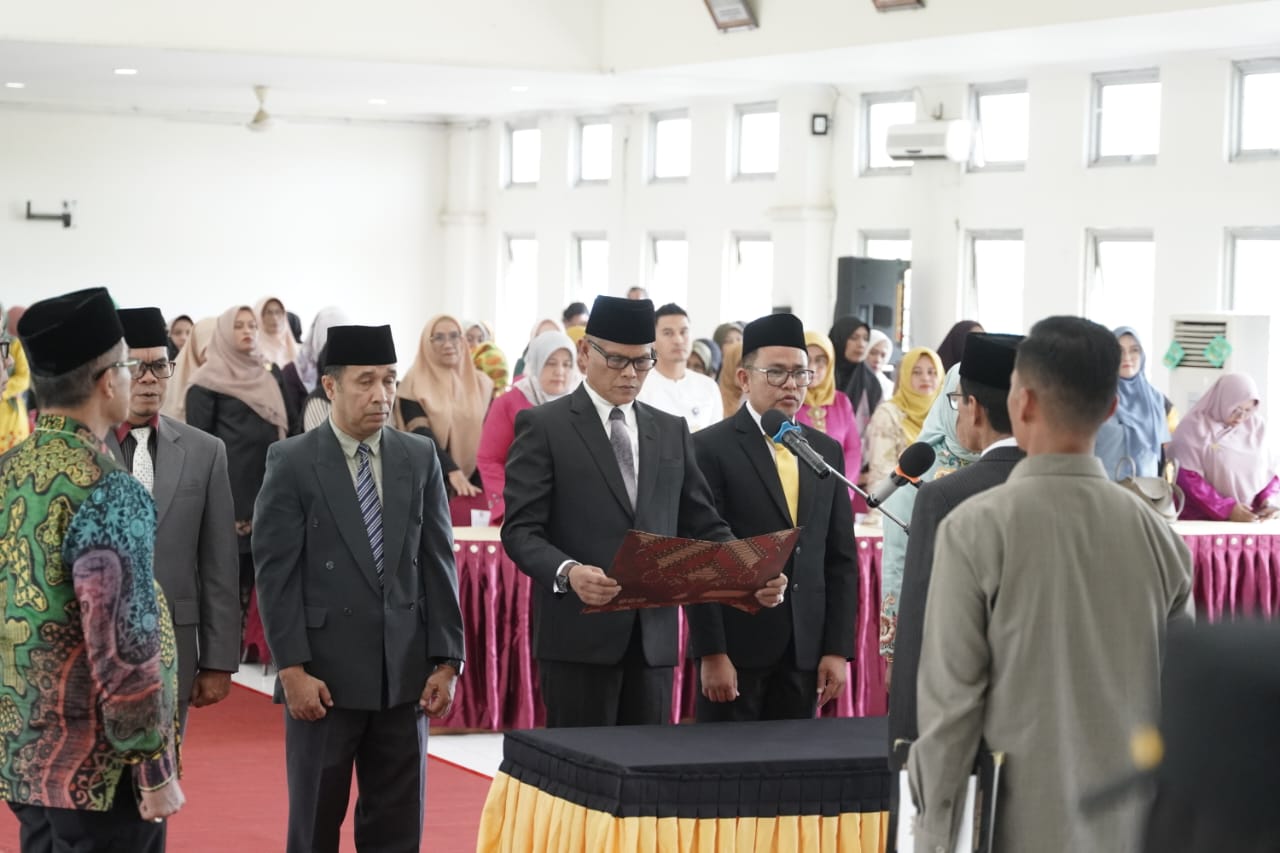 “Saya minta seluruh pejabat agar pendekatan kerja berorientasi teamwork, bekerja sama dan bersinergi dengan pejabat lainnya. Senantiasa menjaga dan mempertahankan integritas, loyalitas, dan komitmen terhadap tugas dan tanggung jawab dalam melaksanalan tugas serta selalu meningkatkan kinerja pribadi maupun keseluruhan,” pintanya.