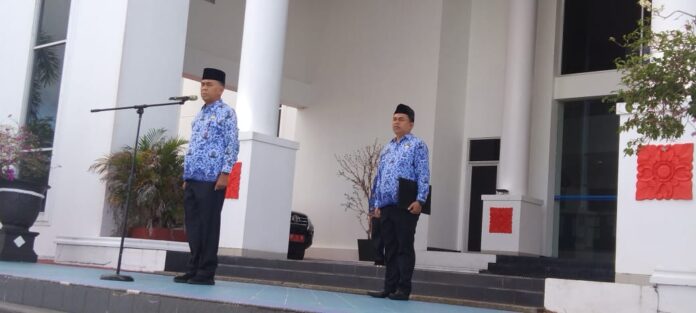 Upacara berlangsung di Halaman Kantor Bupati Natuna, Jalan Batu Sisir, Kecamatan Bunguran Timur, Ranai pada Selasa (02 Mei 2023).