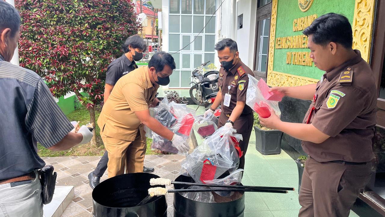 Kepala Cabang Kejaksaan Negeri (Kacabjari) Natuna di Tarempa Niky Junismero menjelaskan, pemusnahan barang bukti ini terdiri dari 14 perkara yang dimana terhitung dari Januari sampai dengan Juni 2024 dan telah memiliki kekuatan hukum tetap.