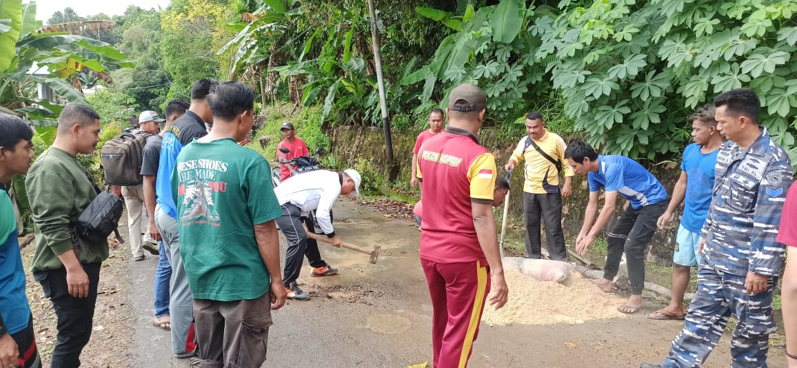 “Goro hari ini agenda kami menampal atau menutupi jalan yang berlobang di sepanjang ruas jalan desa Penuba dari pelabuhan sampai ke Air Bugis,”terangnya.
