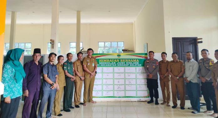 Camat Singkep Selatan, Munzilin Hasibuan, S.I.P., menyampaikan bahwa penandatanganan himbauan untuk menolak judi online dilaksanakan di kantor Camat.